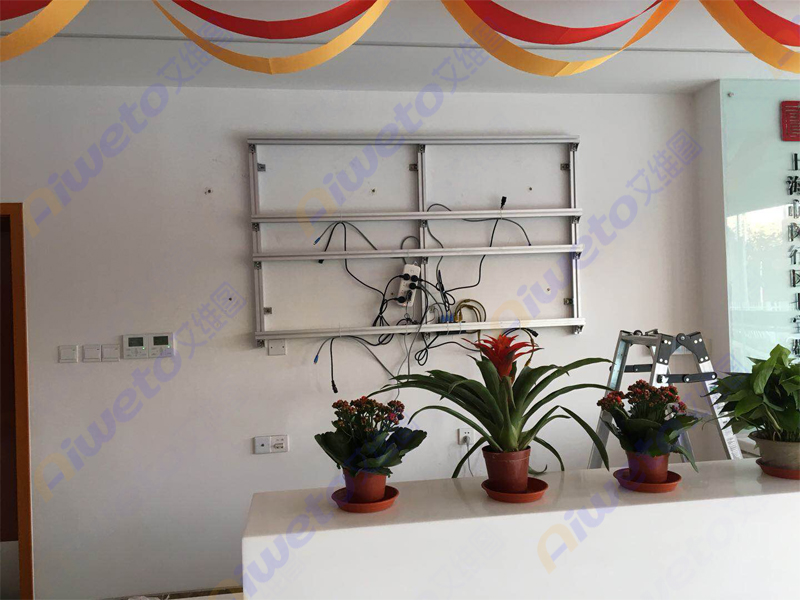 根據上海閔行區七寶敬老院的實際情況, 本來按效果來說應該安裝液壓前維護支架式,但是由于一些原因,只能安裝成了壁掛,這也是一大瑕疵。但是這款2X2的壁掛液晶拼接系統也為上海閔行區七寶敬老院的所有工作人員促進了工作效率,從節能、顯示方式、超高的清晰度等眾多優勢,無一不彰顯出液晶拼接屏的獨特魅力。