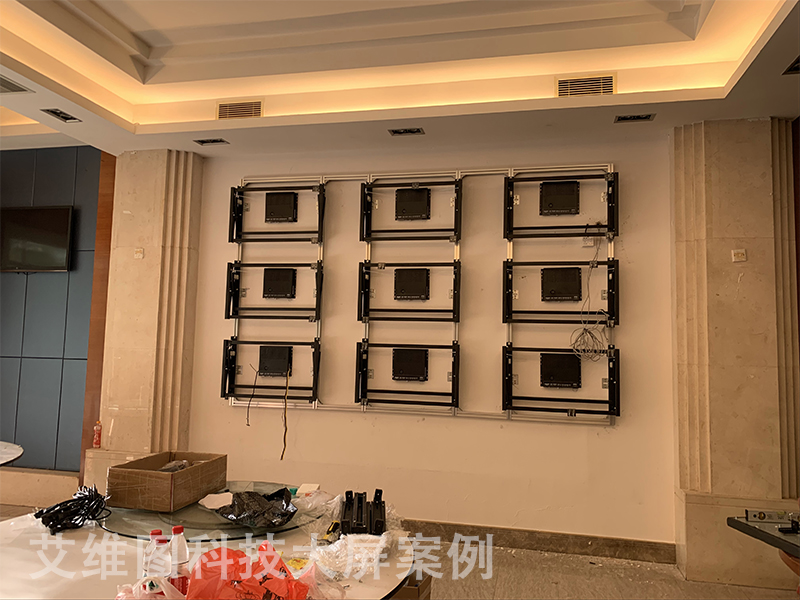 東莞幸福陽光大酒樓位于:東莞市東城區東城中路3號(近莞龍路),根據酒樓的實際情況, 選擇安裝液壓前維護支架式,這款3x3的液壓前維護壁掛液晶拼接系統超高的清晰度等眾多優勢,無一不彰顯出液晶拼接屏的獨特魅力。